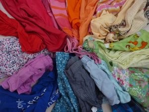 Je propose une variante avec le linge propre. J’ai réalisé des piles suivant la gamme de couleurs. Et le résultat est ‘joli’. Mes hauts sont restés rangés dans cet état d’esprit pendant… au moins une semaine ou deux.